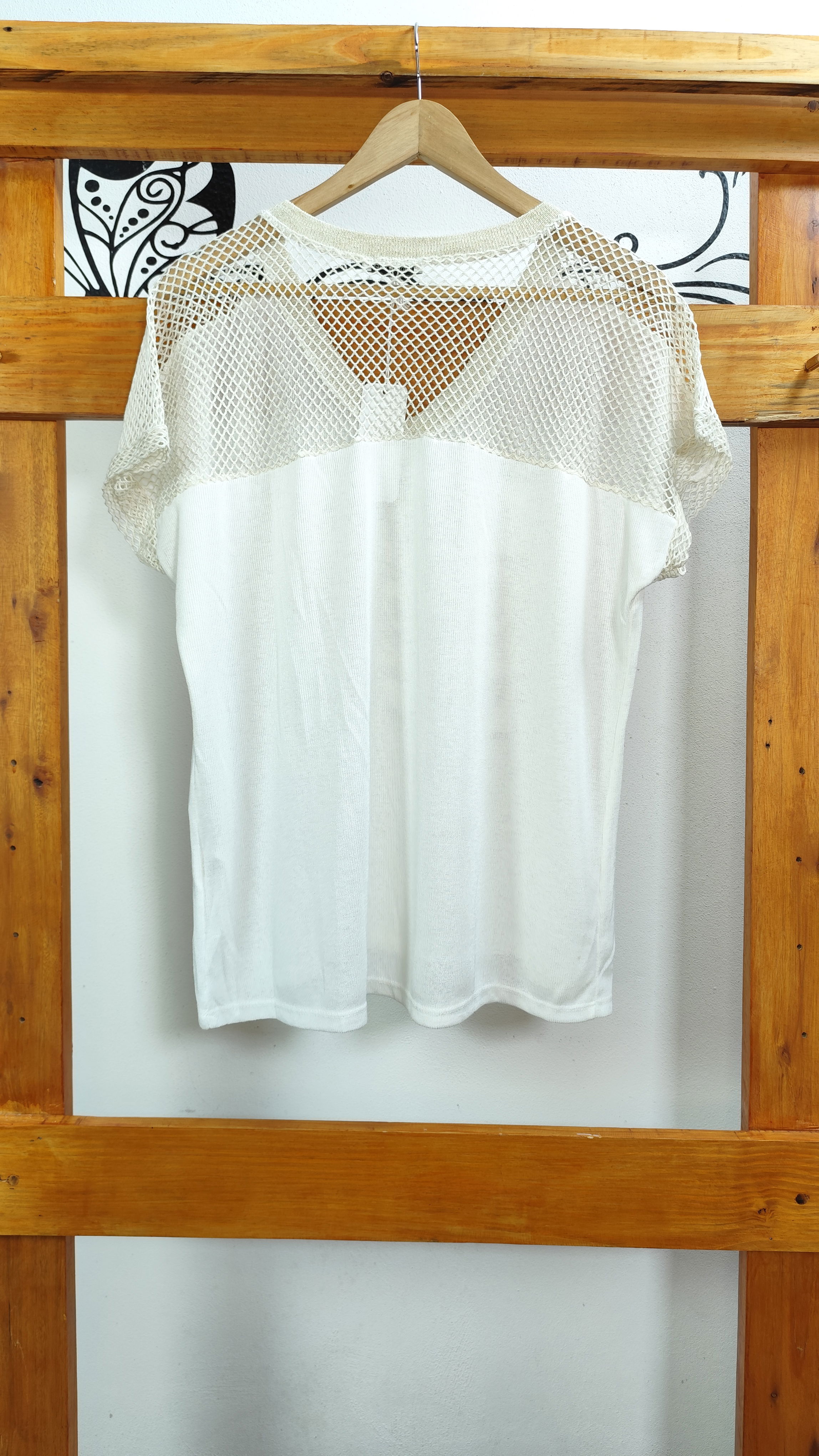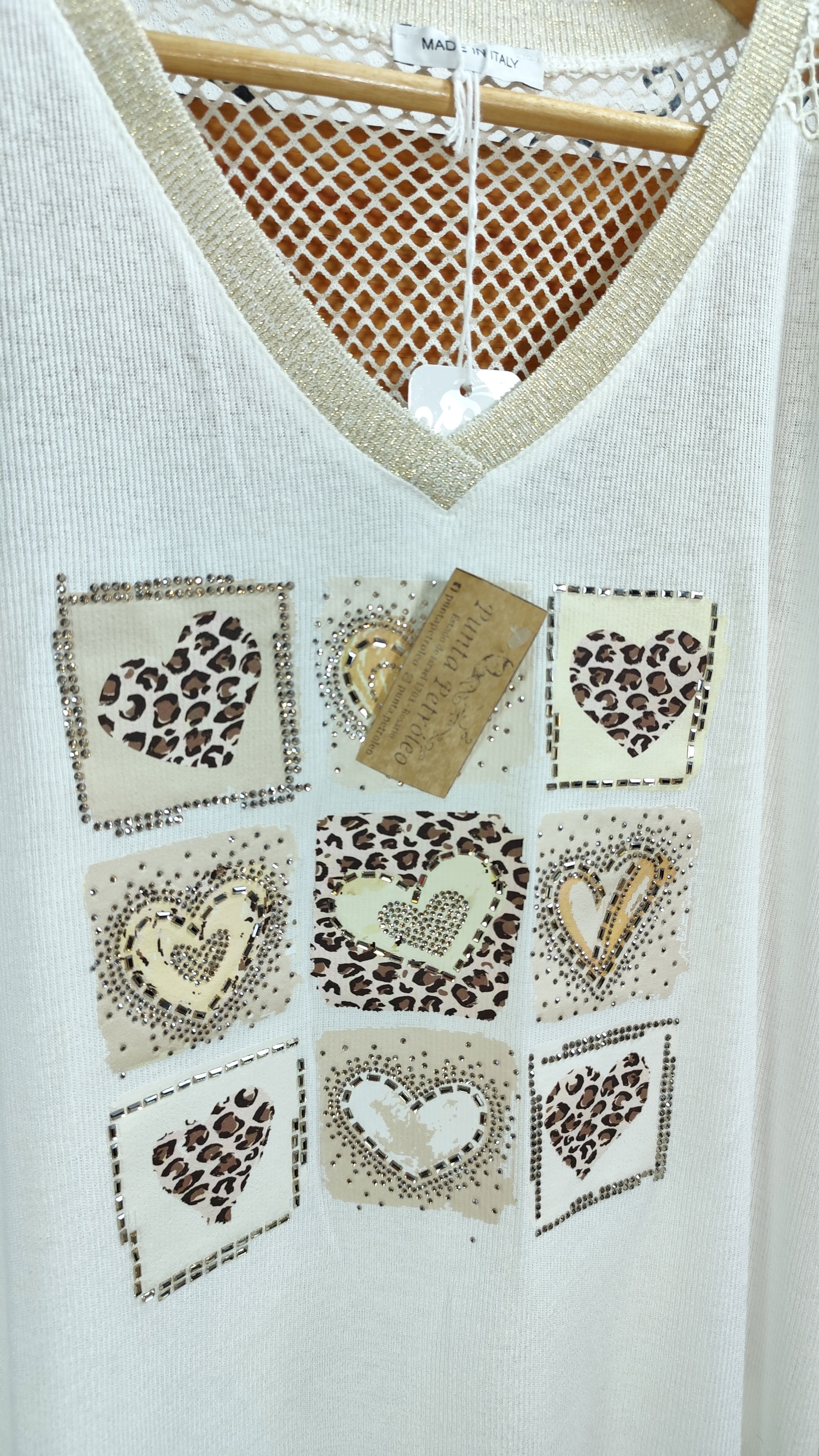 Remera Italiana hilo cobres en la espalda y hombros. Detalles de corazones con Strass