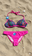 Presenta un diseño estampado multicolor con base oscura y vivos en tono fucsia que realzan el diseño. Cuenta con tiras finas regulables para atar al cuello y espalda, permitiendo un ajuste personalizado y cómodo y tiras y herrajes en el contorno superior de la taza
