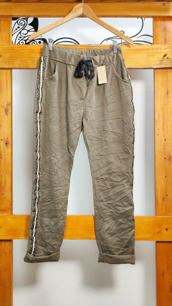 Babucha italiana con tiras a los costados animal print. Cede hasta 140cm de cadera. Color Chocolate