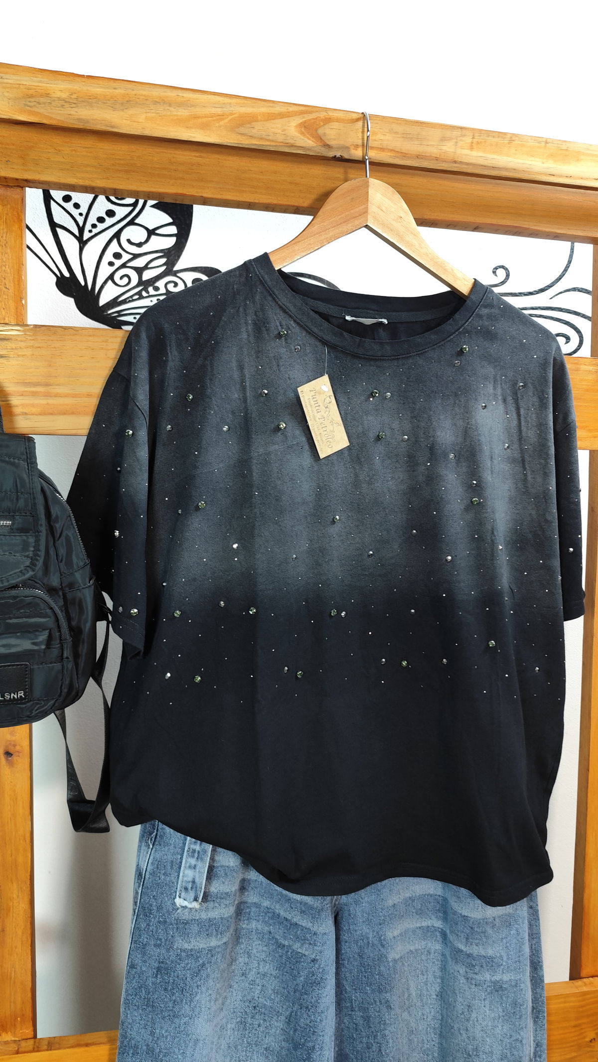Remera Overzise de algodón en degrade con tachas