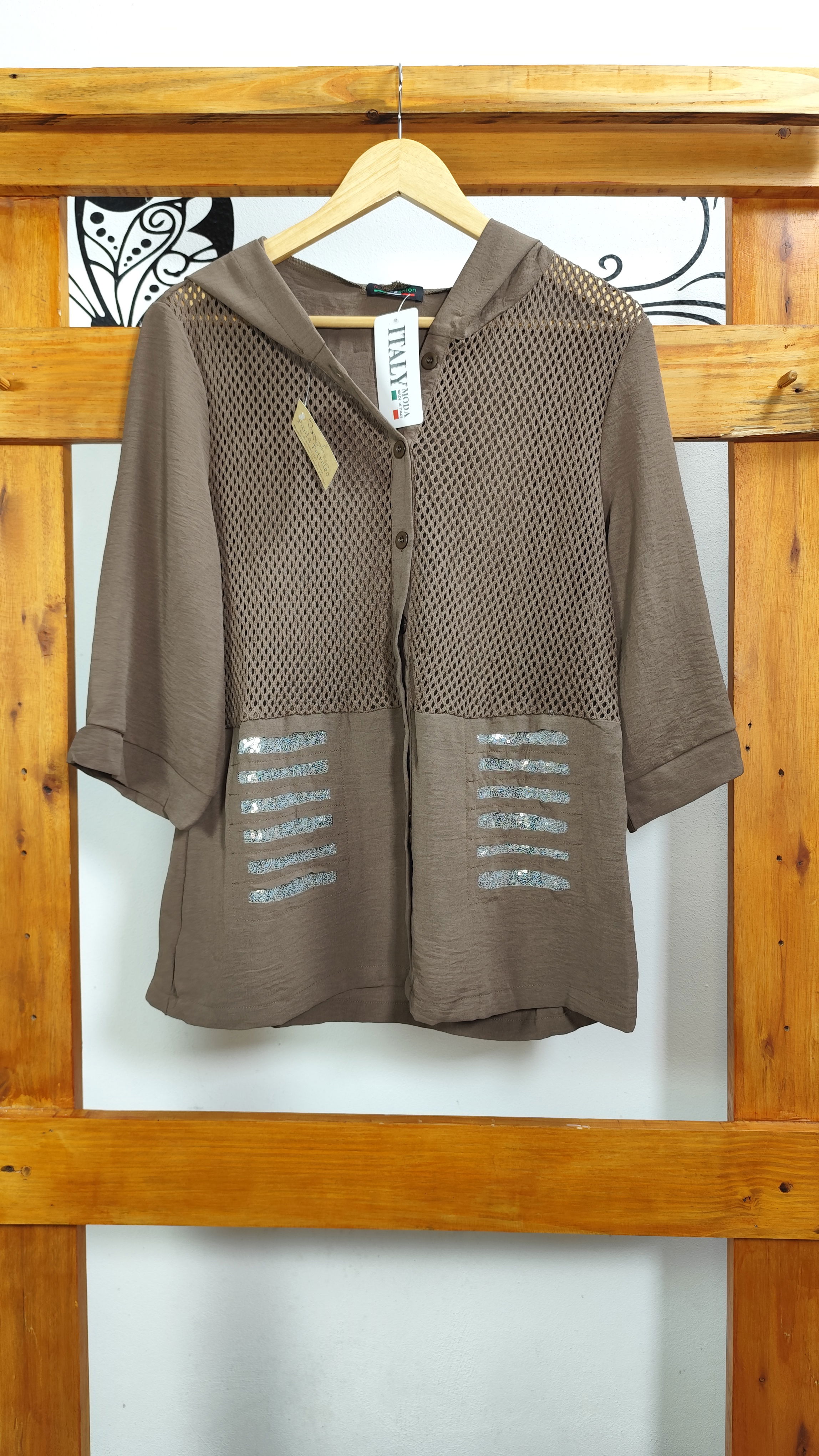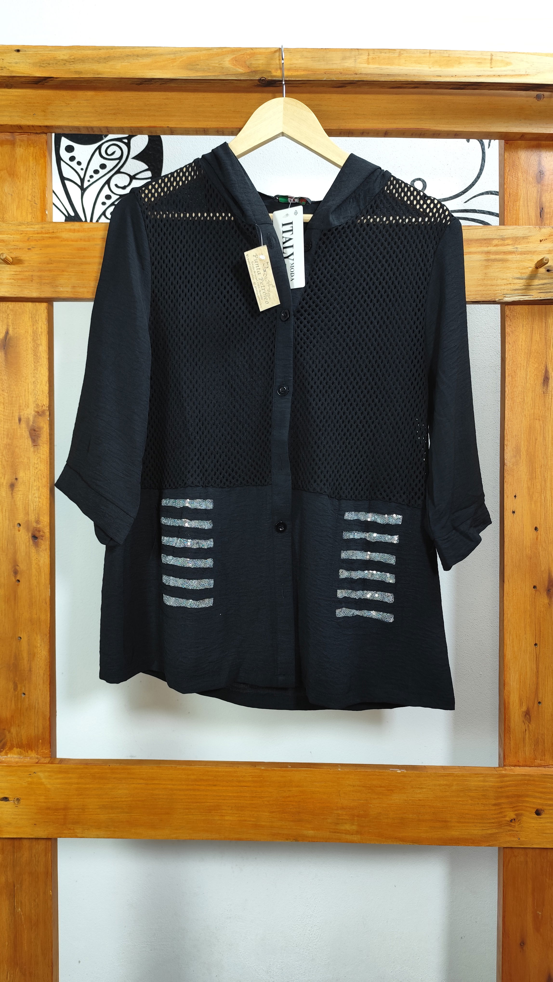 Camisa de ceycpn capucha. Red en la parte adelante es y detalles en lentejuelas.